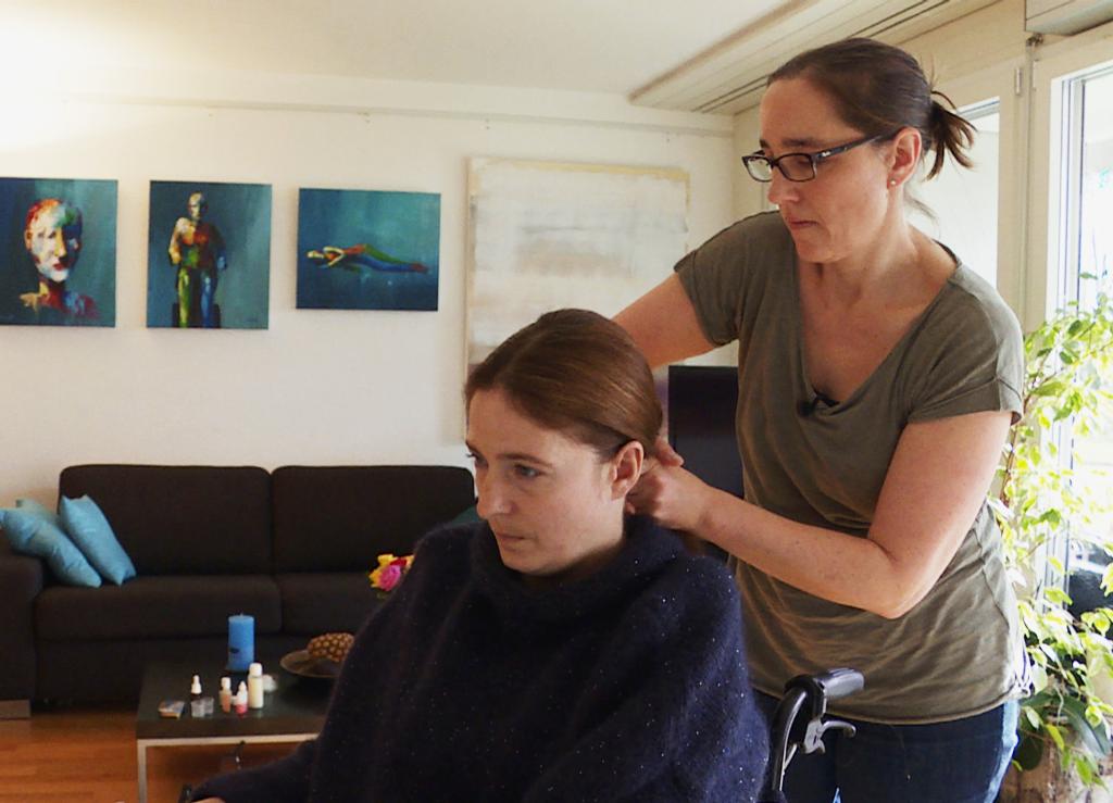 Trotz ihrer schweren Behinderung lebt Franziska Quadri alleine in einer Mietwohnung in Zürich – ein Leben im Pflegeheim ist keine Option für sie. Am Morgen früh und am Abend übernimmt die Spitex die Pflege, dazwischen ersetzen zwei Assistentinnen der ehemaligen Werberin Hände und Füsse.